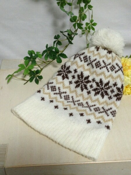 - ◆雪の結晶柄が可愛いニット帽◆46~50cm◆