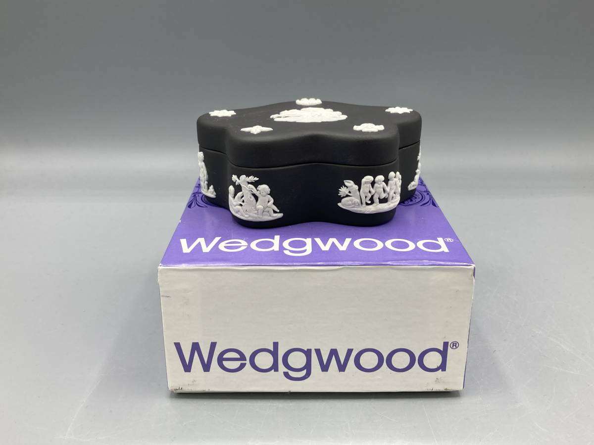 > 英国 ウェッジウッド 箱付き ジャスパーウェア ブラック 小物入れ 蓋付 星形 五角形 ジャスパー 黒