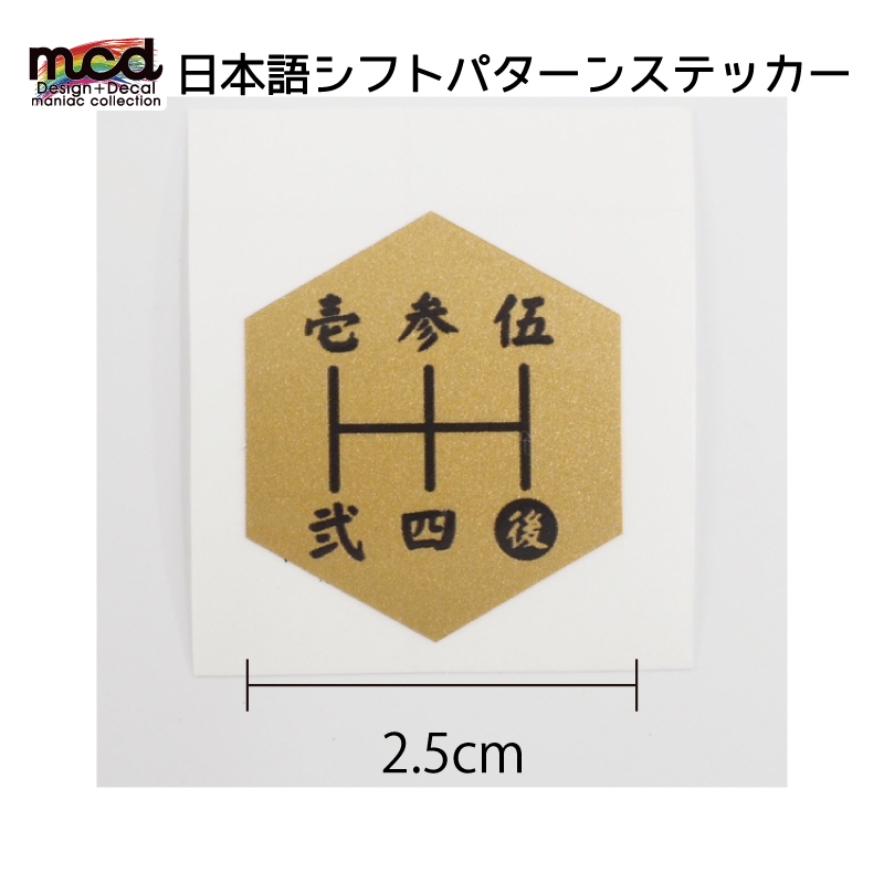 - シフトパターン シール ステッカー 漢字 2.5cm 六角タイプ 1枚 シフトノブ MT車 5速用 マニュアル 金黒文字 和風 いすゞ 三菱 マツダ
