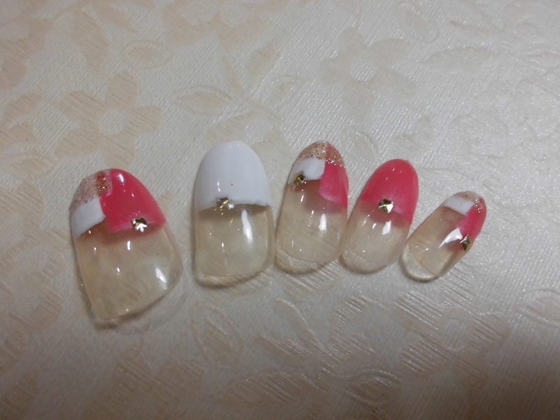 - (定型外orクリックポスト発送込み) 3色のブロックフレンチでネイルチップ ジェル使用作品
