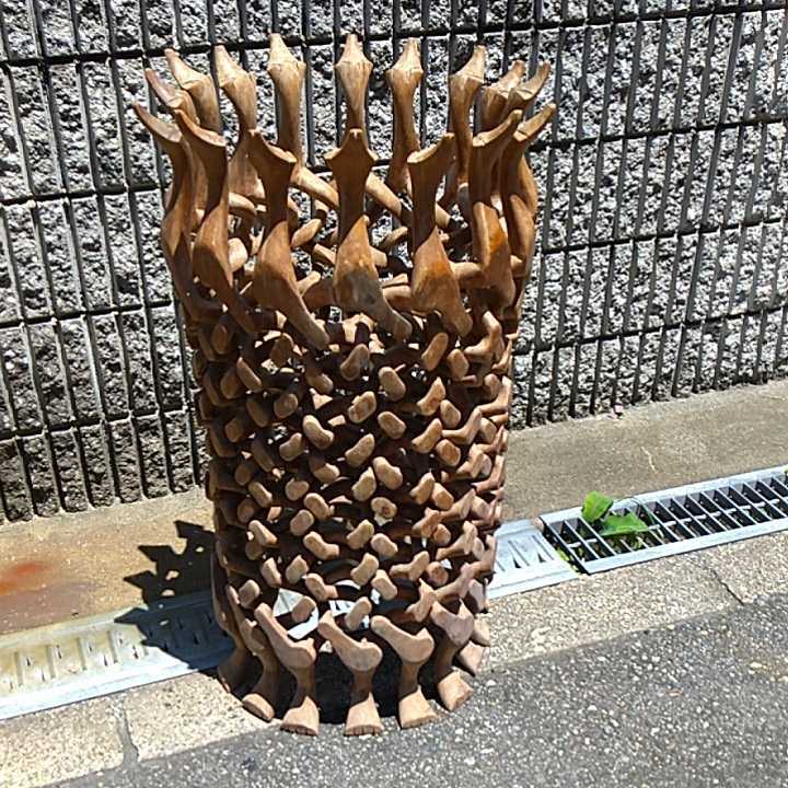 - 71 大きな南洋の木彫り傘立て 経年変化あり 箱無し シミ等あり お引取り限定