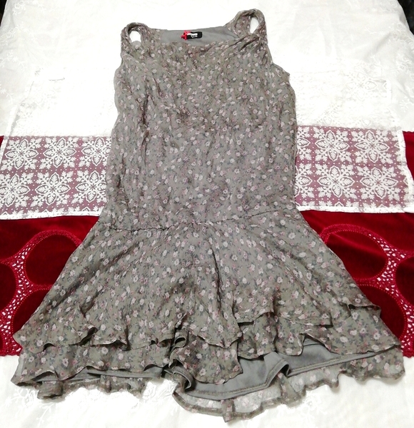 > グレーシフォンネグリジェノースリーブミニスカートワンピース Gray chiffon negligee sleeveless mini skirt dress