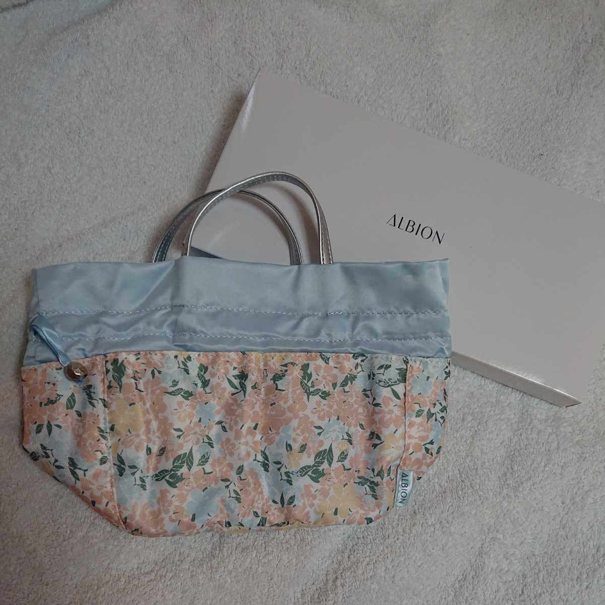 > ALBION★アルビオン★IGNIS★イグニス★バッグインバッグ★持ち手付き★巾着タイプ★水色×花柄★縦18cmX横17.5cmXマチ11cm★ノベルティ