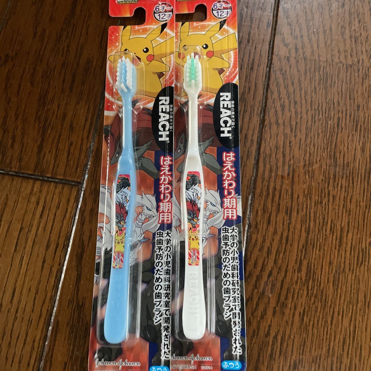 - 歯ブラシ リーチ REACH ポケモン ピカチュウ レシラム ゼクロム 白and水色 2本 ふつう はえかわり期用 未使用 自宅保管品
