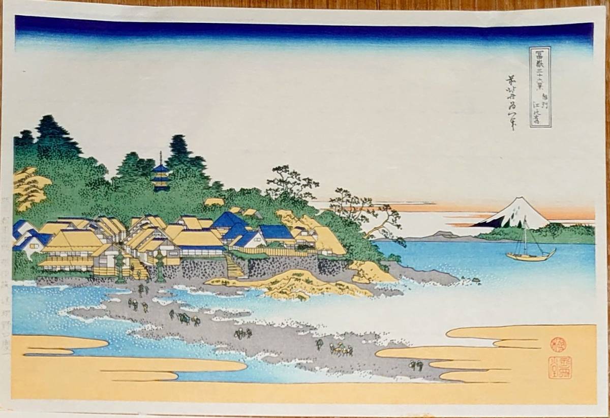 - f21081314〇浮世絵 大錦 伝統芸術 手摺木版 北斎画 北斎 富嶽三十六景 相州 江の島 報道出版 平成5年〇和本古書古文書