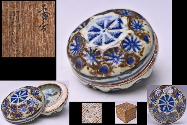 - 国山 窯か ★ 呉須 星押文 香合 ★ 共箱★ 香道具 ★ 茶道具 ★