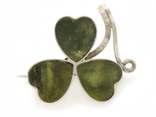 - 1900s 英国 アンティーク シルバー製 クローバー コネマラ大理石 シャムロック ピン ブローチ イギリス製 バーミンガム ホールマーク