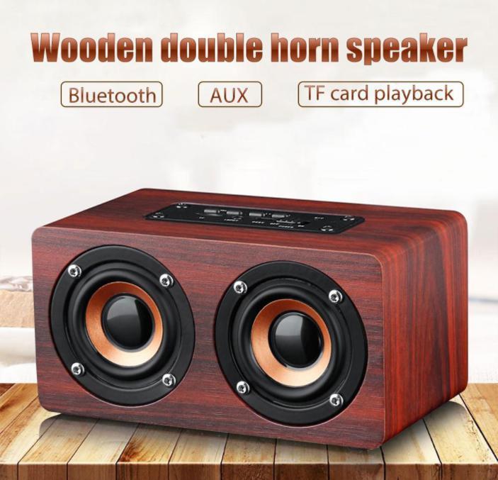 - ☆新品・未使用☆☆送料無料☆ W43 Bluetoothスピーカー ワイヤレススピーカー デュアルスピーカー 3D ウーハー レトロ 木製 ブラウン