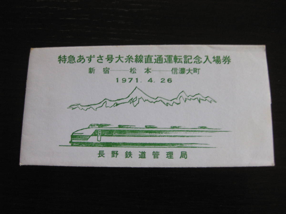 - 国鉄 特急あずさ号大糸線直通運転記念入場券 見本 2枚セット 長野鉄道管理局