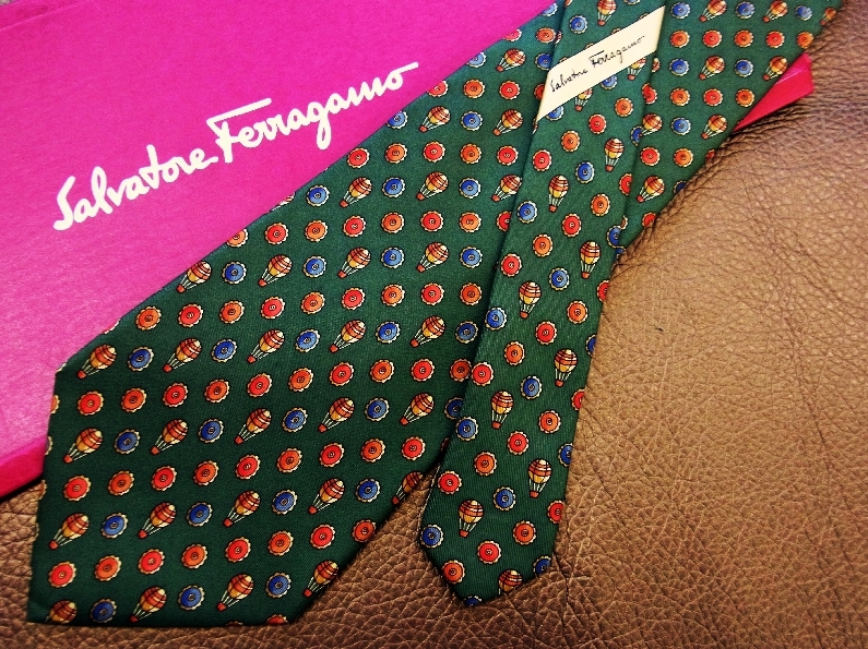 - №R2426♪良品 ♪フェラガモ【気球・花柄・ドット】ネクタイ