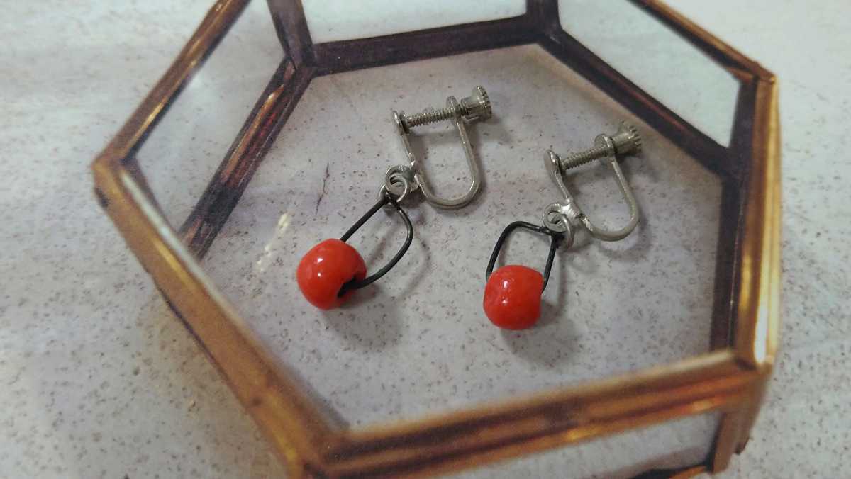 - □訳あり□朱色ビーズ・揺れるイヤリング□