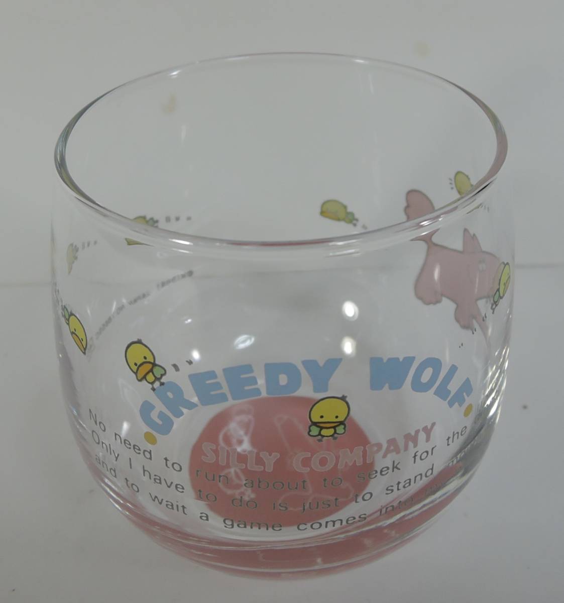 - ☆M06 昭和レトロ■MIDORI ミドリ GREEDY WOLF/オオカミ・小鳥 ガラスコップ/グラス■SILLY COMPANY