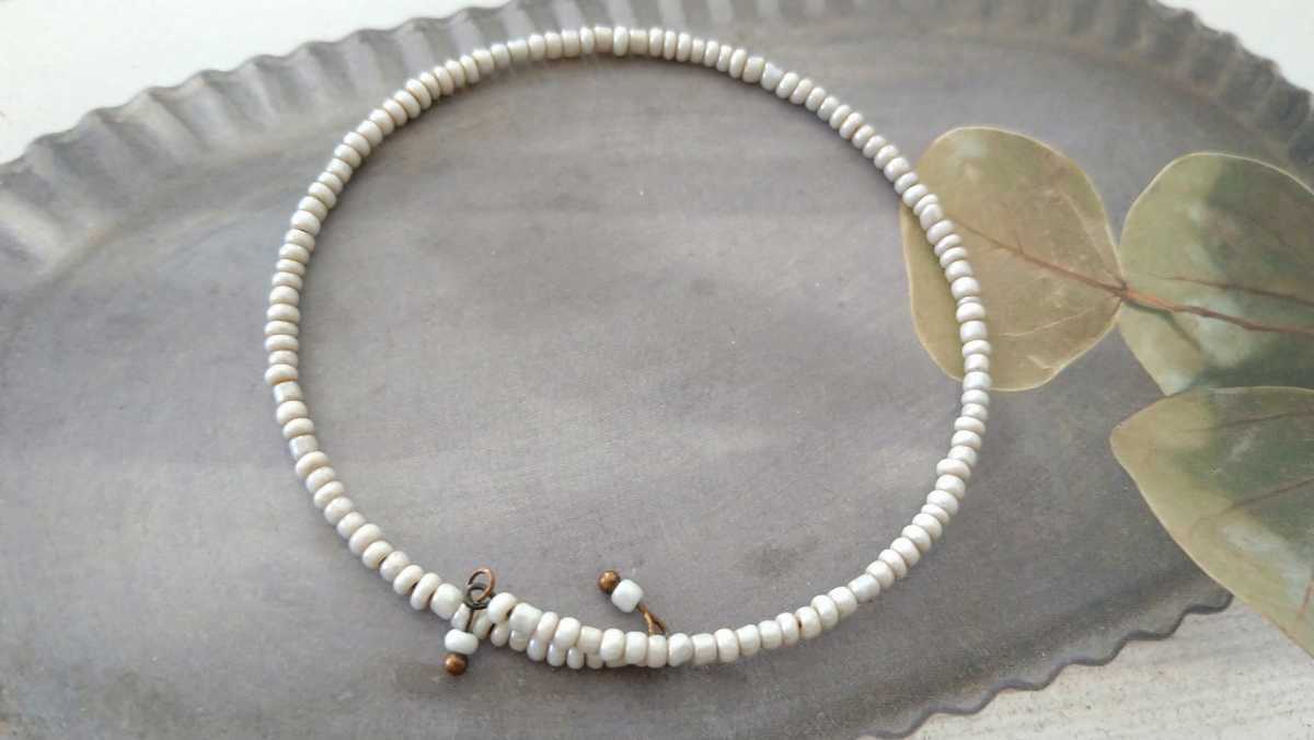 - □シンプル□光沢あり白ビーズ・ブレスレット□