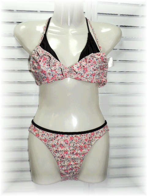 - ビキニ セパレート水着 9号/M ホワイト地×小花柄