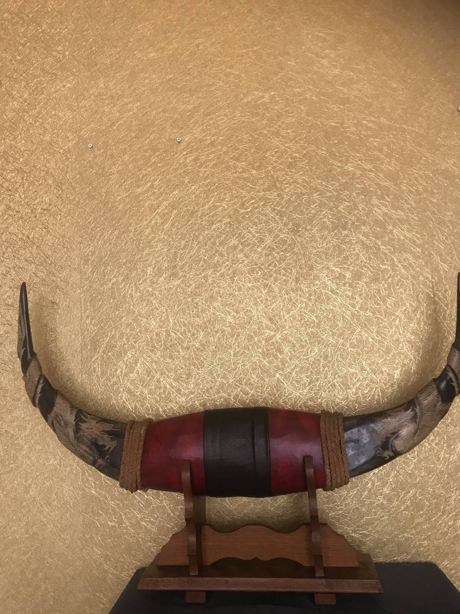 - 牛角の置物 赤眼黒龍 龍の彫刻 昭和レトロ