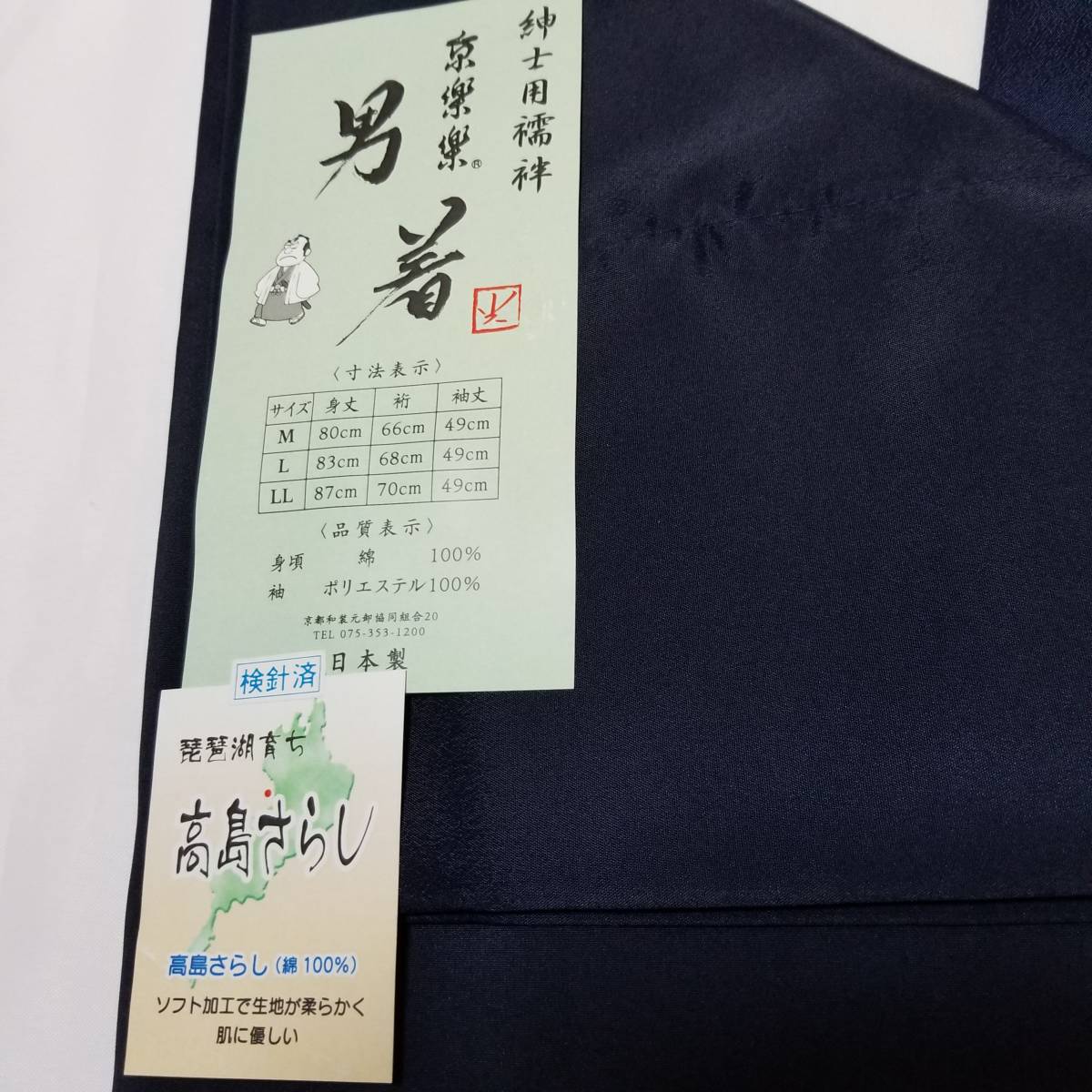 > 【桐徳】紳士物☆半襦袢☆即決品*新品*美品{半襦袢}*M寸*丈83-裄68☆身頃-白地.綿100%☆袖-紺地.化繊地☆掛け衿-紺地.化繊地*№5289