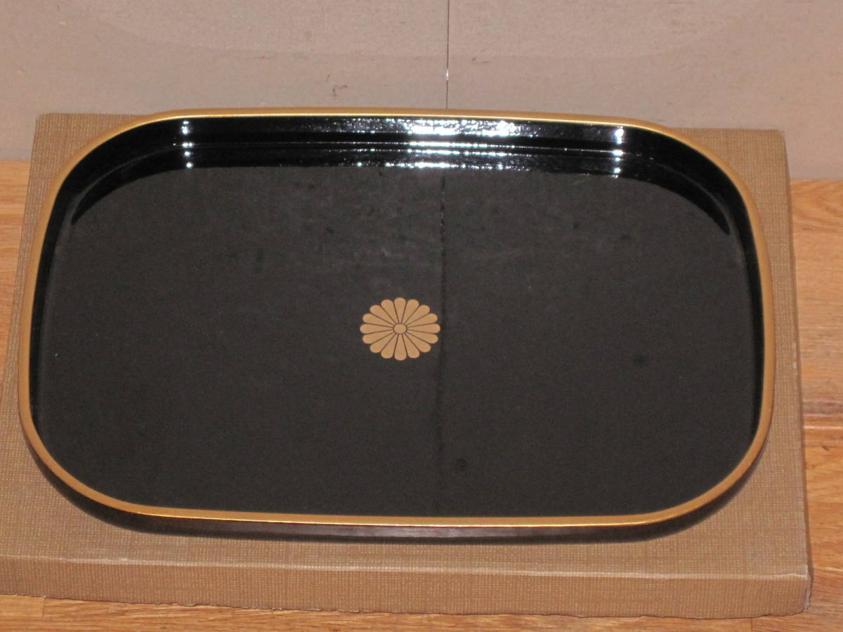 - 長手盆 36x25.7cm 勲五等瑞宝章 トレー お盆 横長盆
