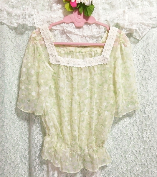 > 黄緑フワフワ白レースシースルーチュニック Yellow green fluffy white lace see-through tunic