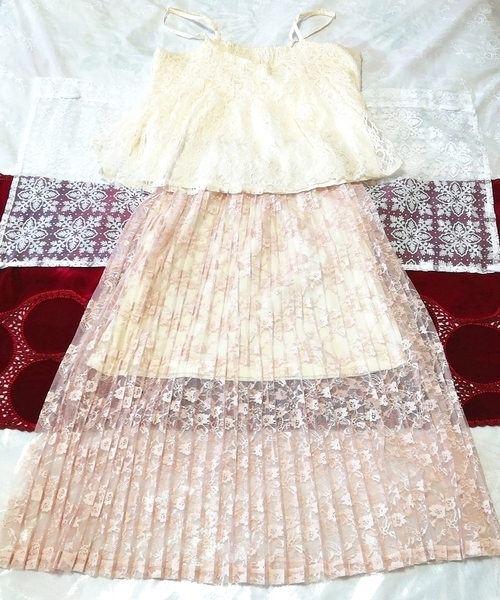 > フローラルホワイレースキャミソール ネグリジェ シースルーレーススカートドレス 2P Lace camisole negligee seethrough lace skirt dress