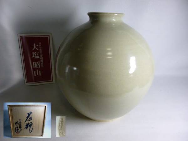 - 旧家から 赤膚焼 大塩昭山 花瓶 共箱