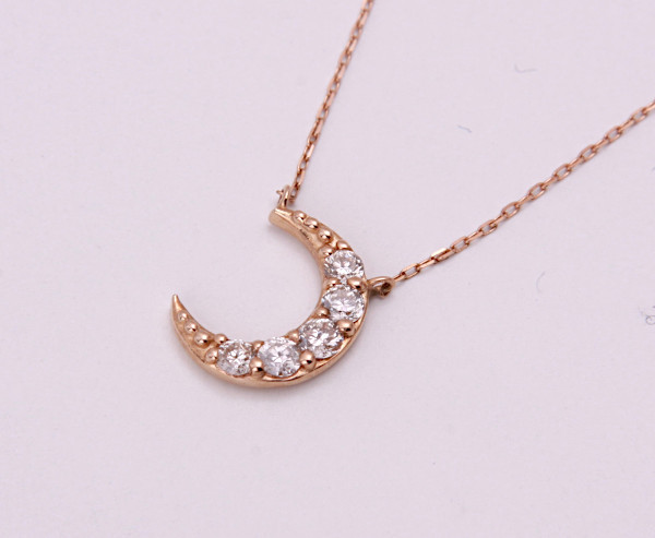 - 《質屋出品》k18PG★天然ダイアモンド0.17ct三日月ペンダントネックレス★C-5496