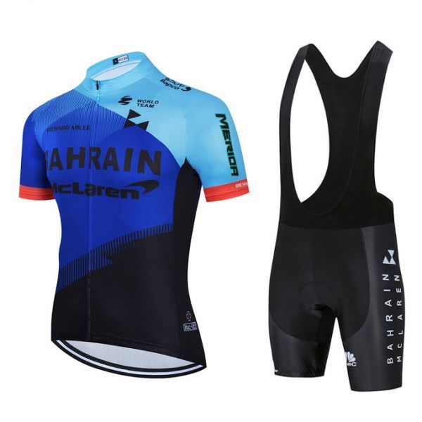 > 新品 サイクルジャージ 上下セット No98 Lサイズ バーレーン フルジップ ウェア 半袖 メンズ サイクリング MTB 自転車 ロードバイク