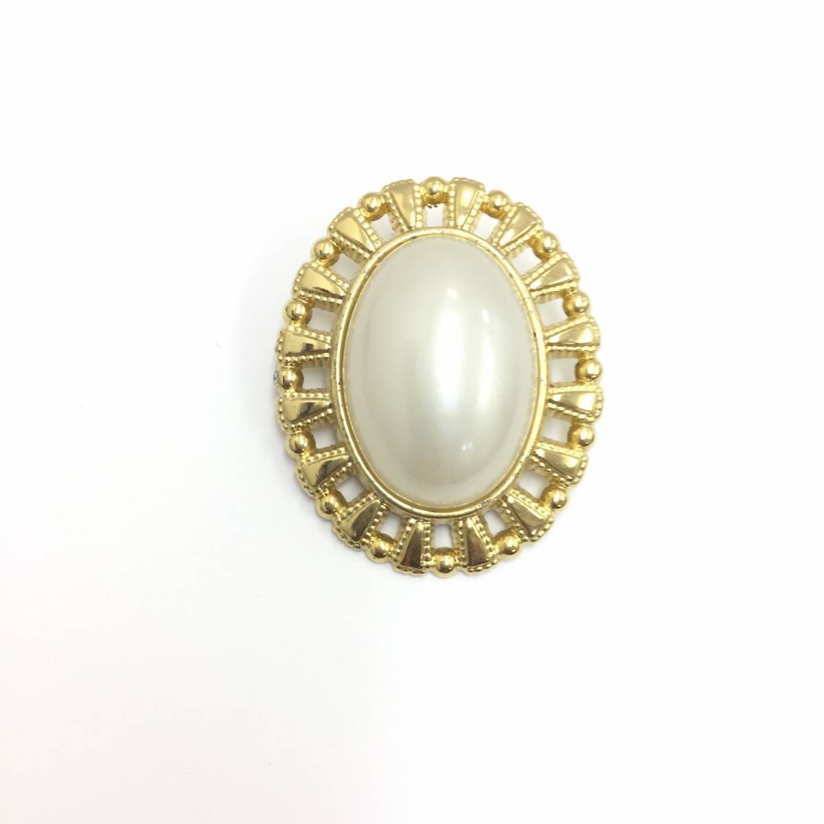 - 【ブローチ】約3.5×3cm 軽い 軽量 シンプル 楕円 オーバル アクセサリー 金色 白色(パールホワイト系)