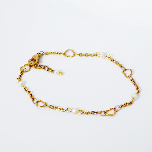 - 淡水真珠 淡水パール 真珠ビーズ ハート ステンレスチェーン ブレスレット