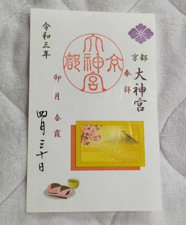 - ◆京都大神宮(四条河原町)◆期間限定御朱印 4月デザイン (令和3年(2021年)版)「春霞」