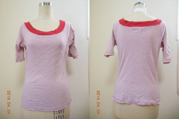 - BISSER/赤白ボーダー半袖カットソー/Tシャツ/レディース/Lサイズ