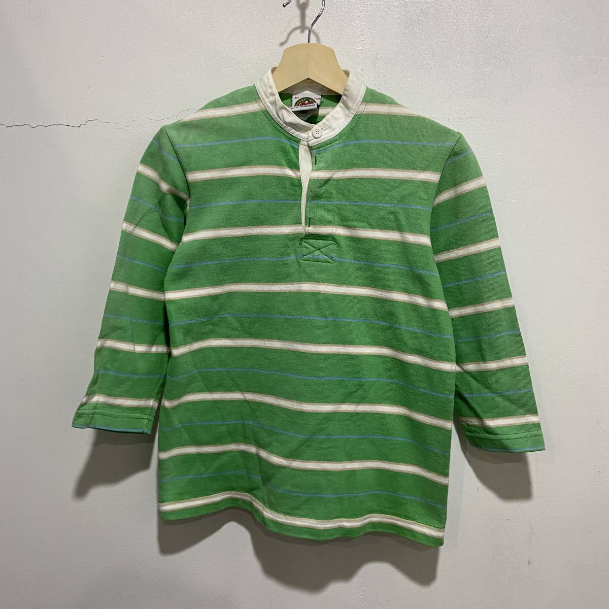 - ☆送料無料☆BARBARIANバーバリアン☆ノーカラーボーダーラガーシャツ☆7分袖☆レディース☆グリーン系☆K21