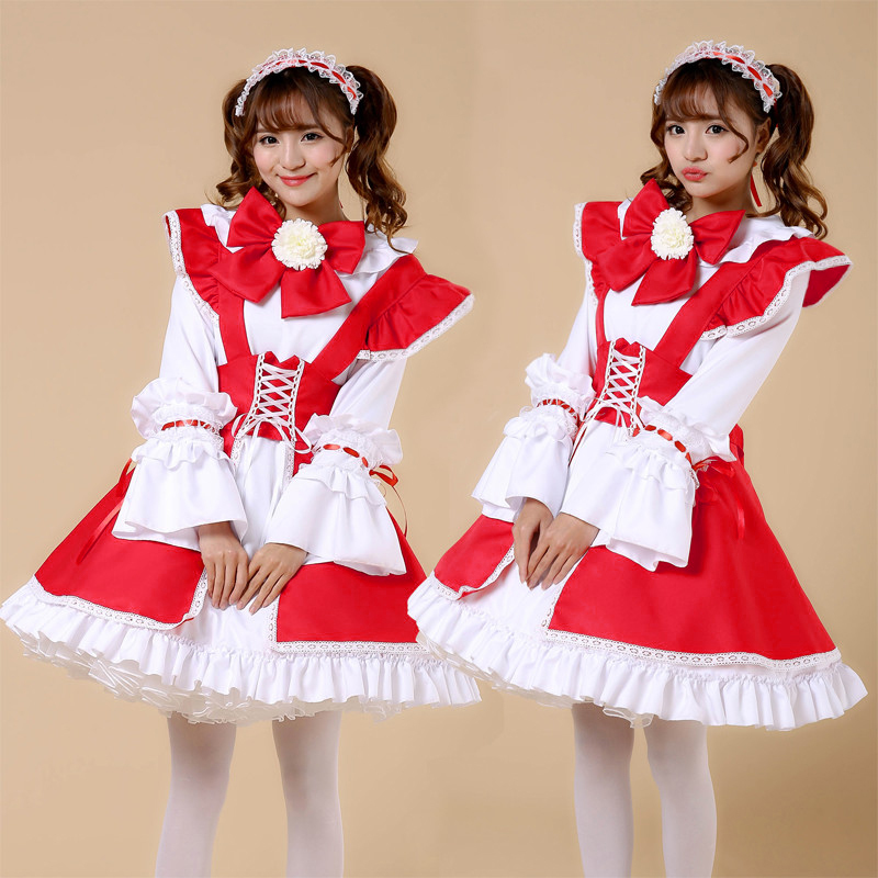 - 【L-3】ワンピース メイド 服 ロリータ 学園祭 ハロウィン お祭り イベント コスプレ衣装 赤