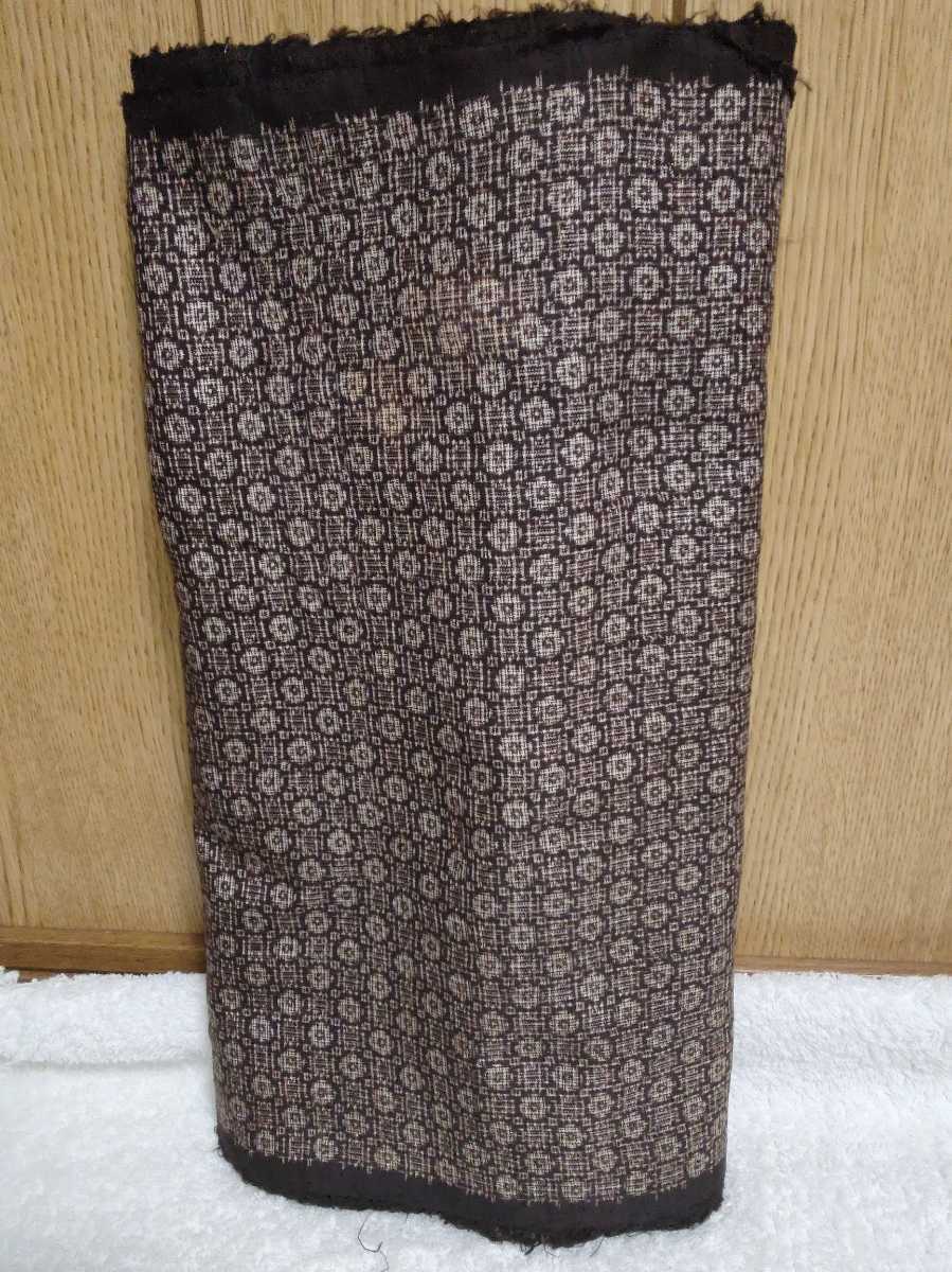 - 古布 小紋 花柄 茶色 リメイク 薄地 素材 生地 素材不明 vintage brown cloth サイズ 縦 約37cm 幾何学模様
