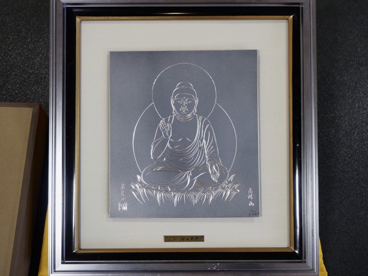 - 鳥田宗吾 作 阿弥陀如来 純銀製 手彫り 額付きパネル 松久宗琳 画 仏教美術
