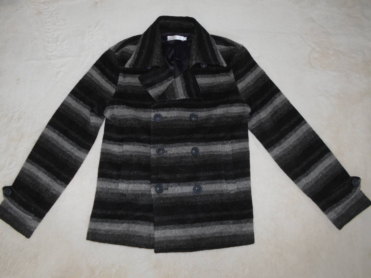 - 【特別価格】★Rings no.134202 グラデーションボーダー ダブルブレストショートコート★黒灰sizeM★
