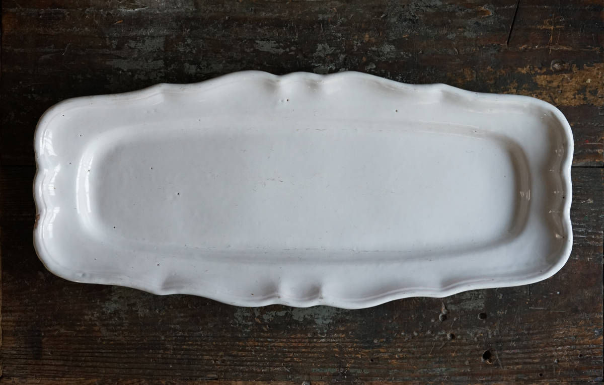 > 古い大きな白錫釉ファイアンス魚皿 / 18世紀・フランス / アンティーク 古道具 民陶