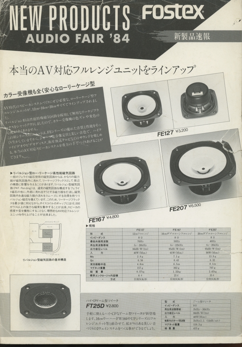 - Fostex 84年新製品速報カタログ フォステクス 管5332