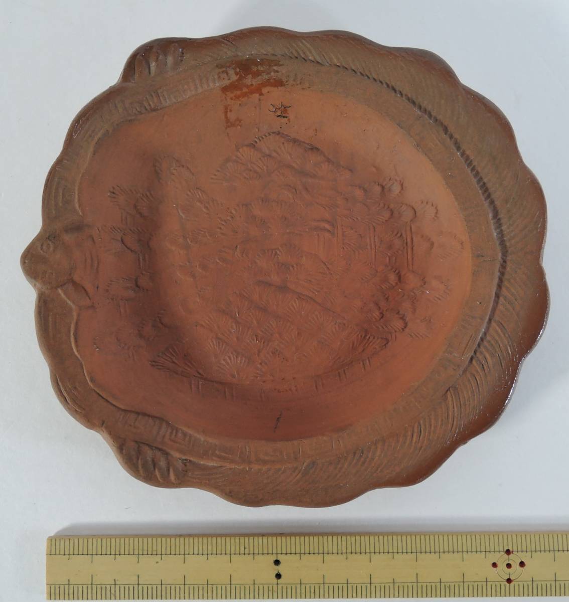 - ☆C02 レトロ■備前焼 煎餅皿/せんべい皿 松/ウサギ?■