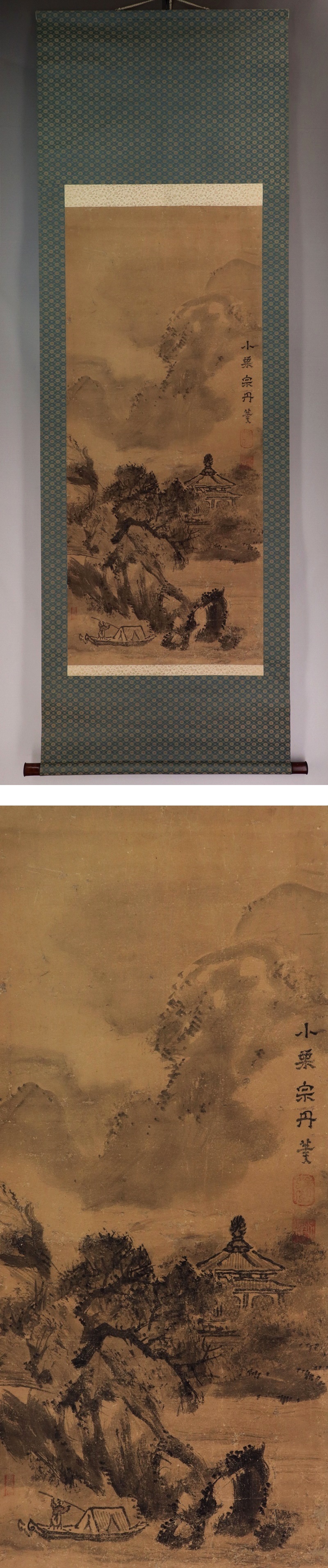 - 【真作】小栗宗丹【水墨山水】◆紙本◆合箱◆掛軸 v11065