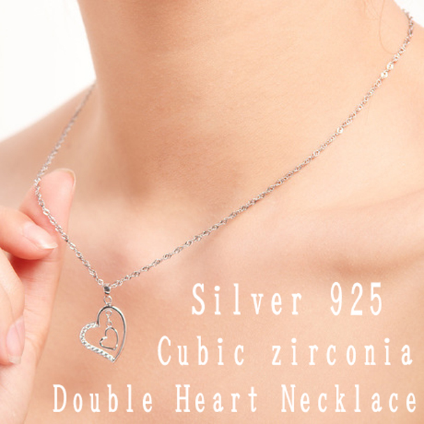 - ネックレス シルバー925 キュービックジルコニア オープンハート レディース ダブルハート