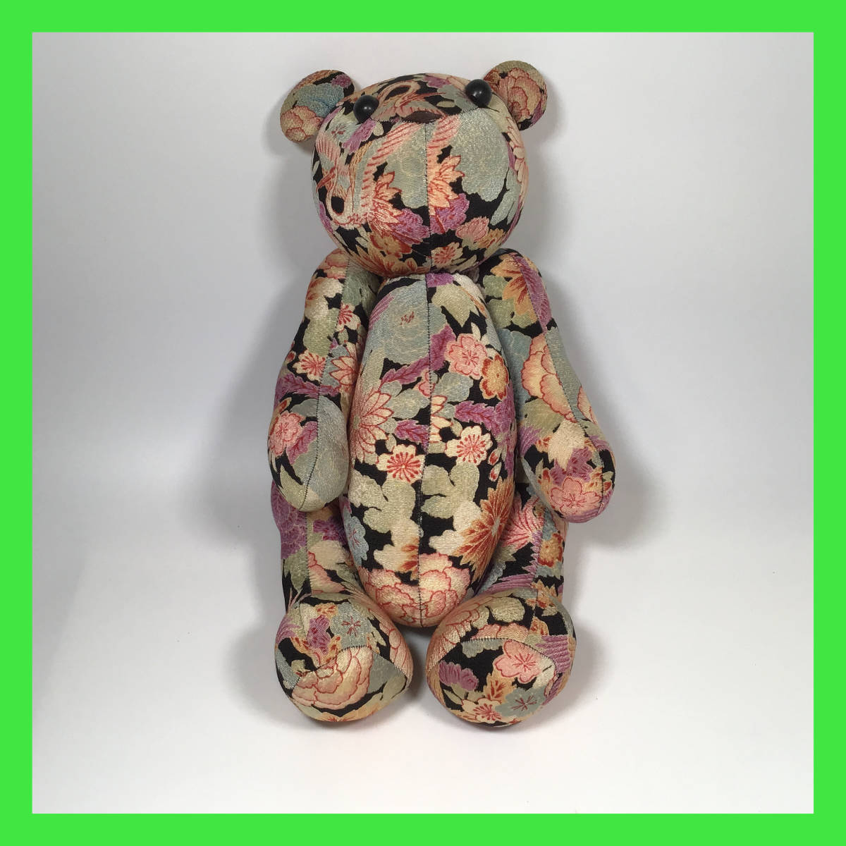 - N-1369☆ ちりめん柄・生地のクマ ぬいぐるみ 動物 くま クマ 商品タグ無し