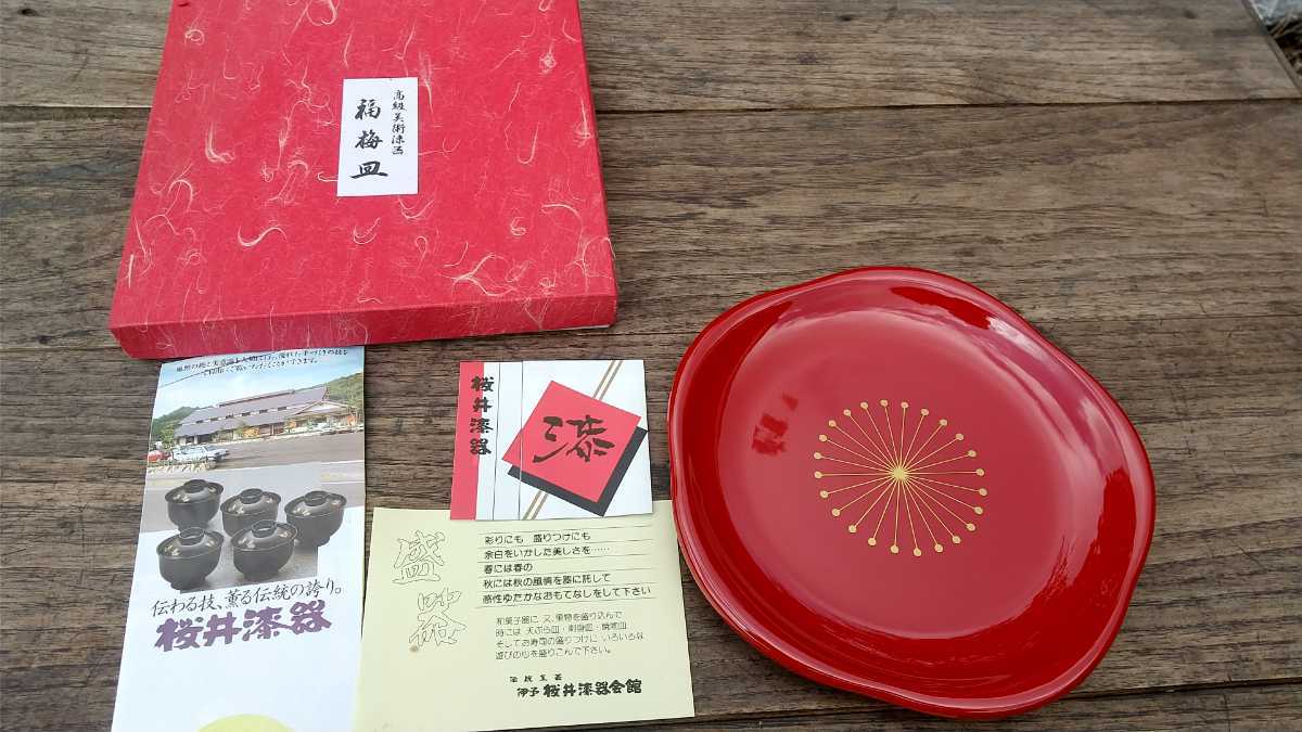 - 伊予桜井漆器 梅福皿 紙箱 栞 菓子器