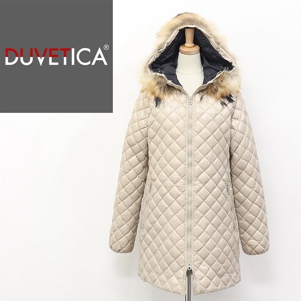 > ◆DUVETICA/デュベティカ ラクーンファー付 フーデッド キルティング ダウン コート ライトベージュ 40