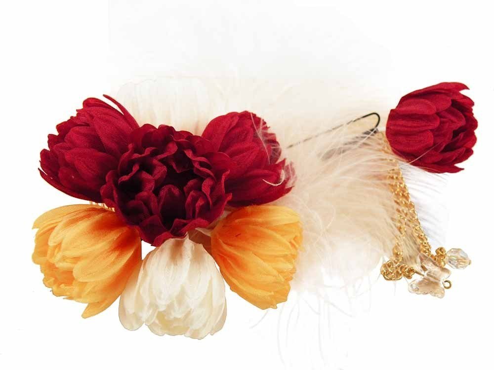- ■七五三 和装用■ お子様用 髪飾り 花 ファー付き 2個セット ck-447(赤系)【七五三 お正月 ひな祭りなどの おめかし用に♪】