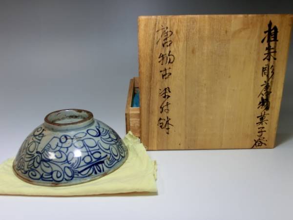 > 鉢■唐物 古い染付の鉢 花唐草 壽 古茶碗 酒盃 箱付き 時代物 唐物 骨董品 古美術■