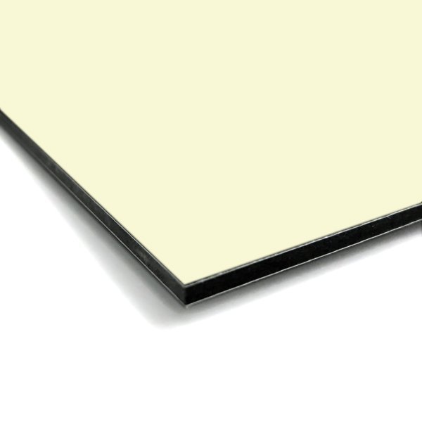 看板下地、表示プレートに! カラーアルミ複合板 オフホワイト(アイボリー)/芯材黒(215FF) 3mm厚 約 925mm x 910mm 1枚 両面:オフホワイト(クリアー保護フィルムつき)※近似色 アイボリー G27-90B(日塗工) 7.5Y9/1(マンセル) 芯材:黒 ※サイズ寸法は数ミリのズレがある場合がございます。 何卒ご了承ください。 ※長期保管品です。キズなどがあります。 ご不安な方は前もってお問い合わせください。