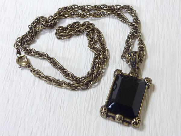- 匿名配送 送料無料 新品 スクエア ブラックストーン ネックレス アンティーク調ゴールド EXILE ジュエリー メンズアクセ