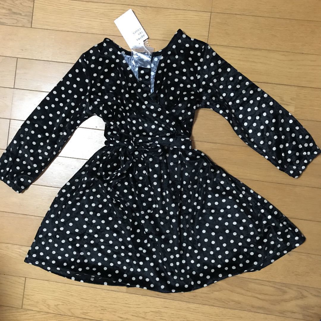> 新品未使用 apres les cours 水玉カシュクールワンピース110 黒
