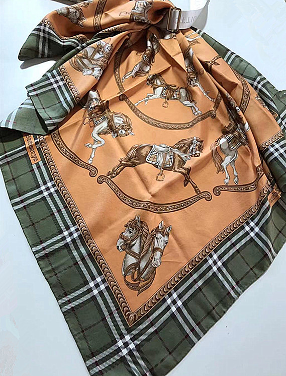 - 稀少【レア柄】★Burberrysバーバリーズ★大判 シルクスカーフ 美品 タグ付き(0815C9-202600)