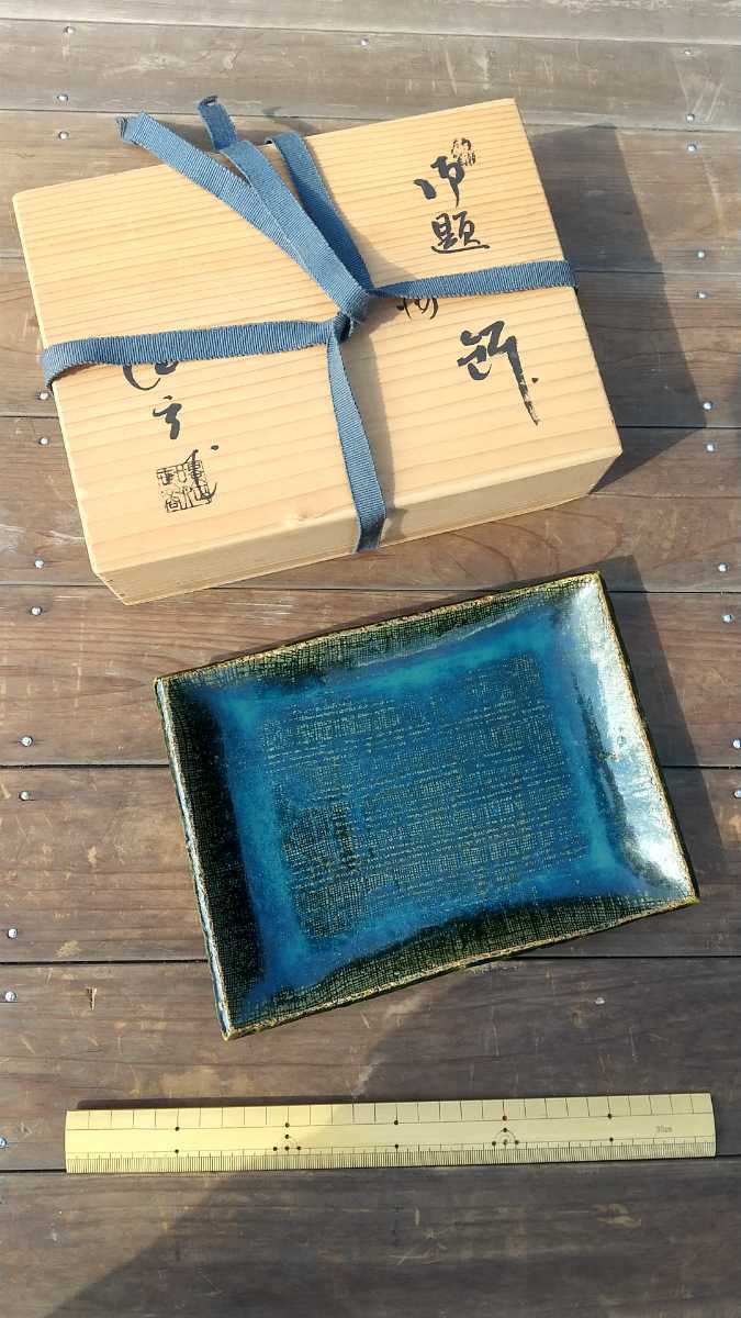 - 古瀬戸窯 加藤作助 織部釉布目 御題鉢 共箱 共布